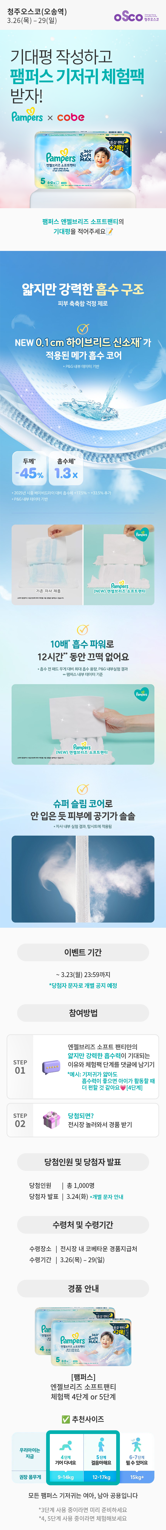 [청주오스코] 팸퍼스 기저귀 체험팩 이벤트