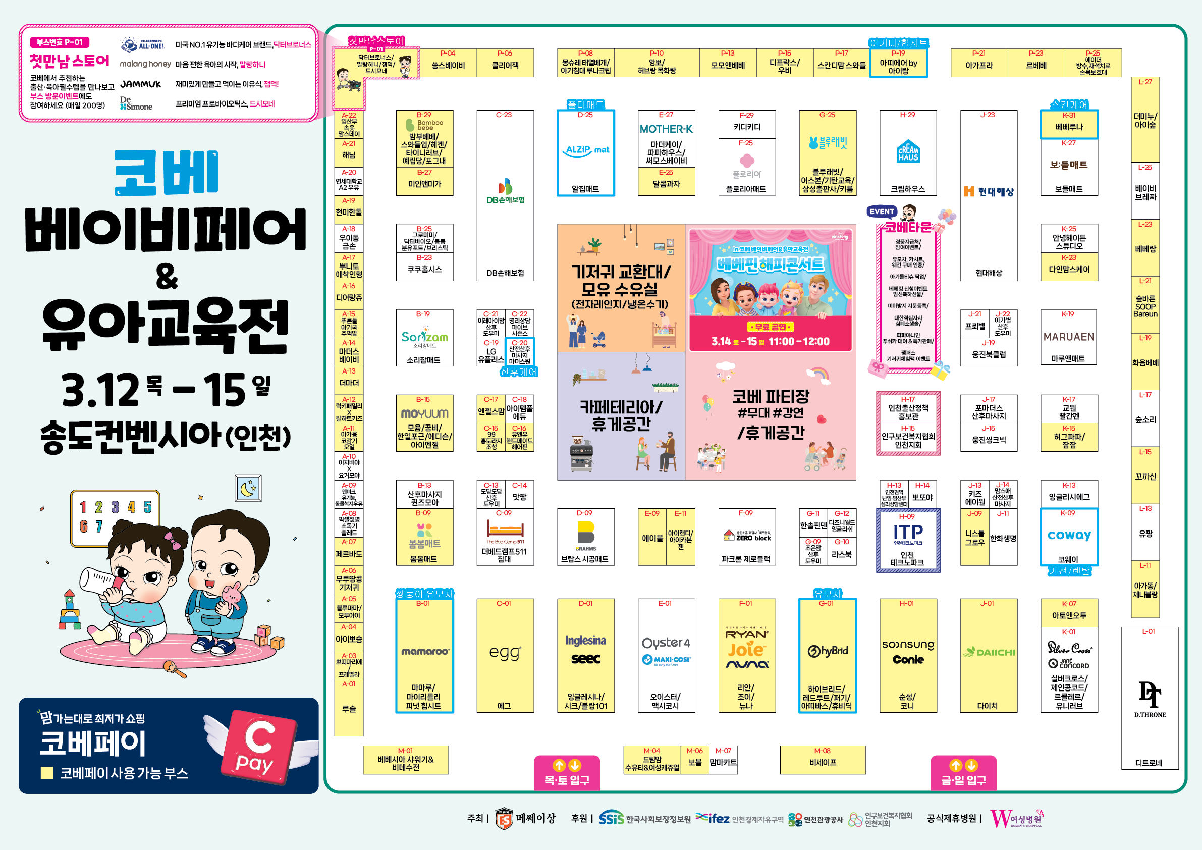 부스배치도| 부스번호 | 브랜드 | 전시품목 | 코베페이 사용 |