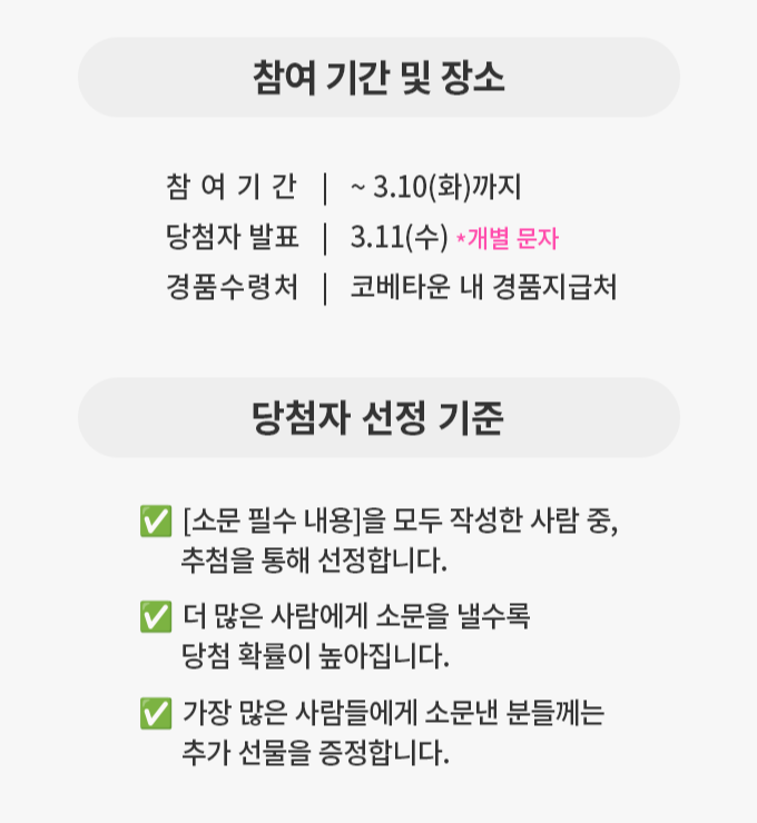 [송도컨벤시아] 맘카페, 육아어플, 단톡방 소문내기 이벤트 페이지 정보 작성자 l 관리자 작성일 2026-01-07 공유 목록 본문 [댓글목록] soyeonths 2026-02-18 비밀 댓글입니다. 1 목록
