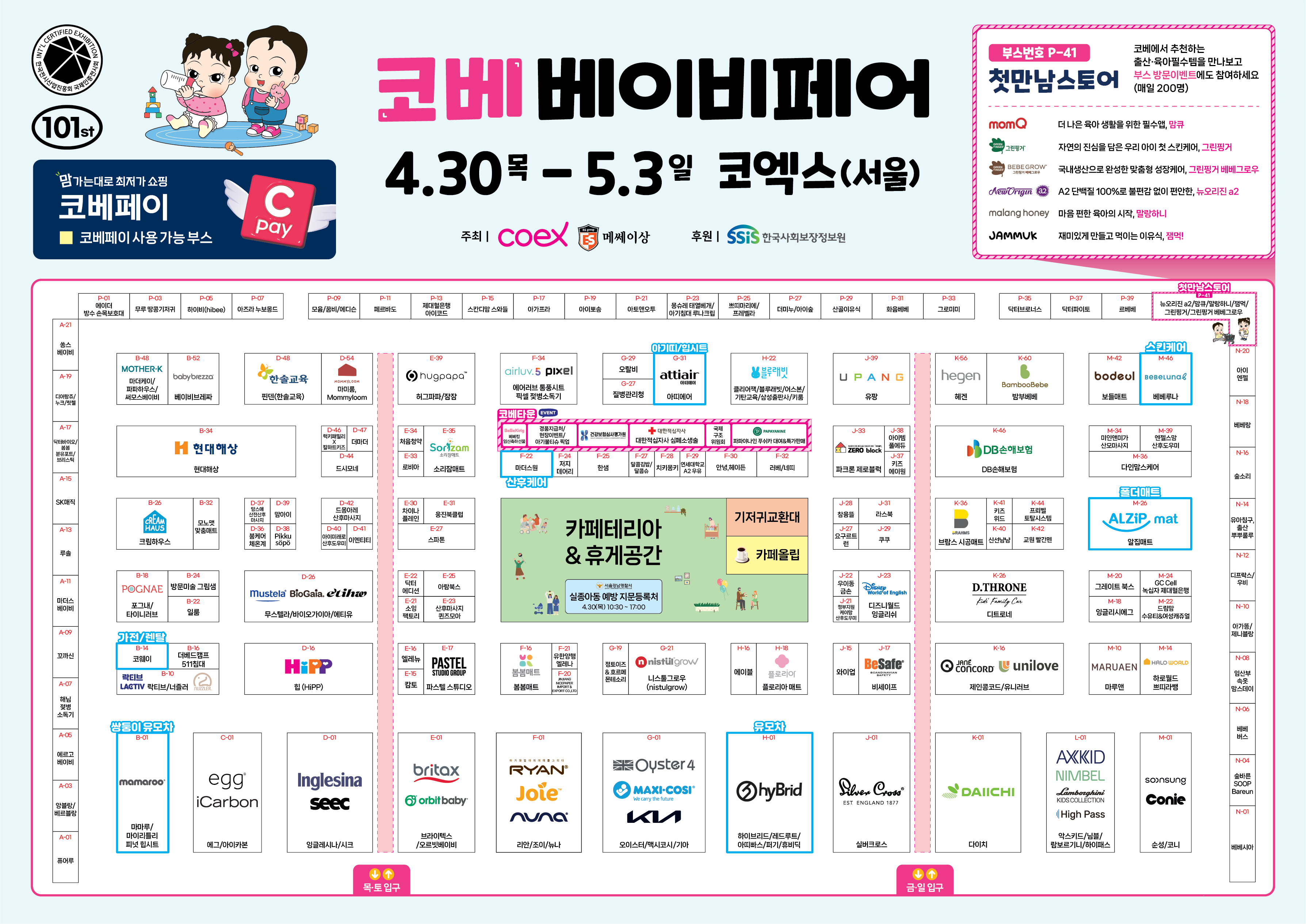 부스배치도| 부스번호 | 브랜드 | 전시품목 | 코베페이 사용 |